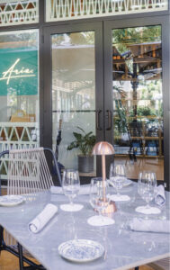 Opening its doors in March 2023, Aria joined sister restaurant Agua, boutique bar Next Door, and coffee shop and bakery Allora, under the Agua Hospitality Group umbrella.