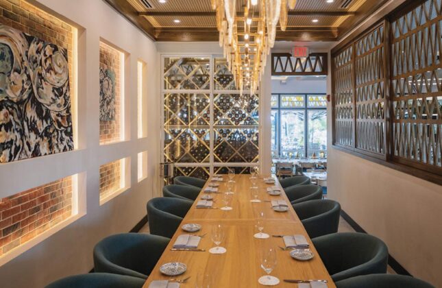 Spanning 2,500 square feet, Aria has the capacity to host around 70 guests indoors in the bar, wine room and dining areas, and 40 guests on the outdoor patio.