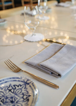 “Our aim was to create a space that evokes the essence of the Mediterranean while also establishing visual links to our sister restaurant, Agua,” explains Cristiano. “This is evident in various design elements such as the wine room, predominant use of white colour, and window panelling, which collectively contribute to a cohesive and harmonious ambience across both venues.”