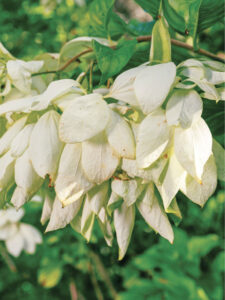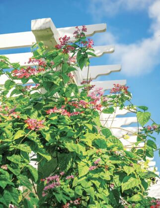 Another favourite is the Claradendron, also known as the light bulb plant, which blooms only in the spring, but has flowers that look like strings of white Christmas lights hanging from the boughs.