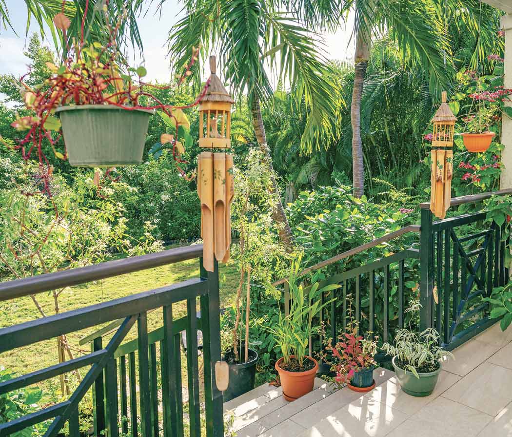 “I have a white garden, all white blooms, and several coloured flower beds, too, but white blooms are my favourite,” she says. “My favourite plants are the Portlandia, followed by Mussaenda.”