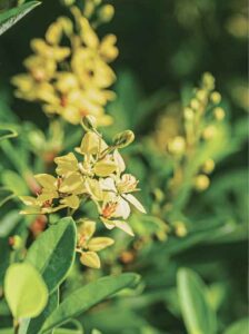 She also has white ixora, white Tahitian gardenias, white fire crackers, Wrightii that blooms year-round, Plumeria pudica that also has blossom all year, cat’s whisker, and periwinkle, to name just a few.