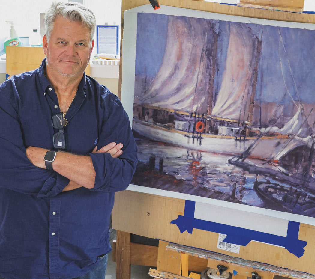 Scott has donated more than 20 paintings to the Fair Weather Foundation, with all proceeds of sales going towards the non-profit’s efforts to restore the schooner and bring it home.