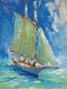 “As an avid sailor, I appreciate the maritime heritage of the islands and of the people,” he says. “When I read about the Fair Weather project, and its goal of rebuilding the schooner, I reached out to see if there was any interest in me donating some paintings.